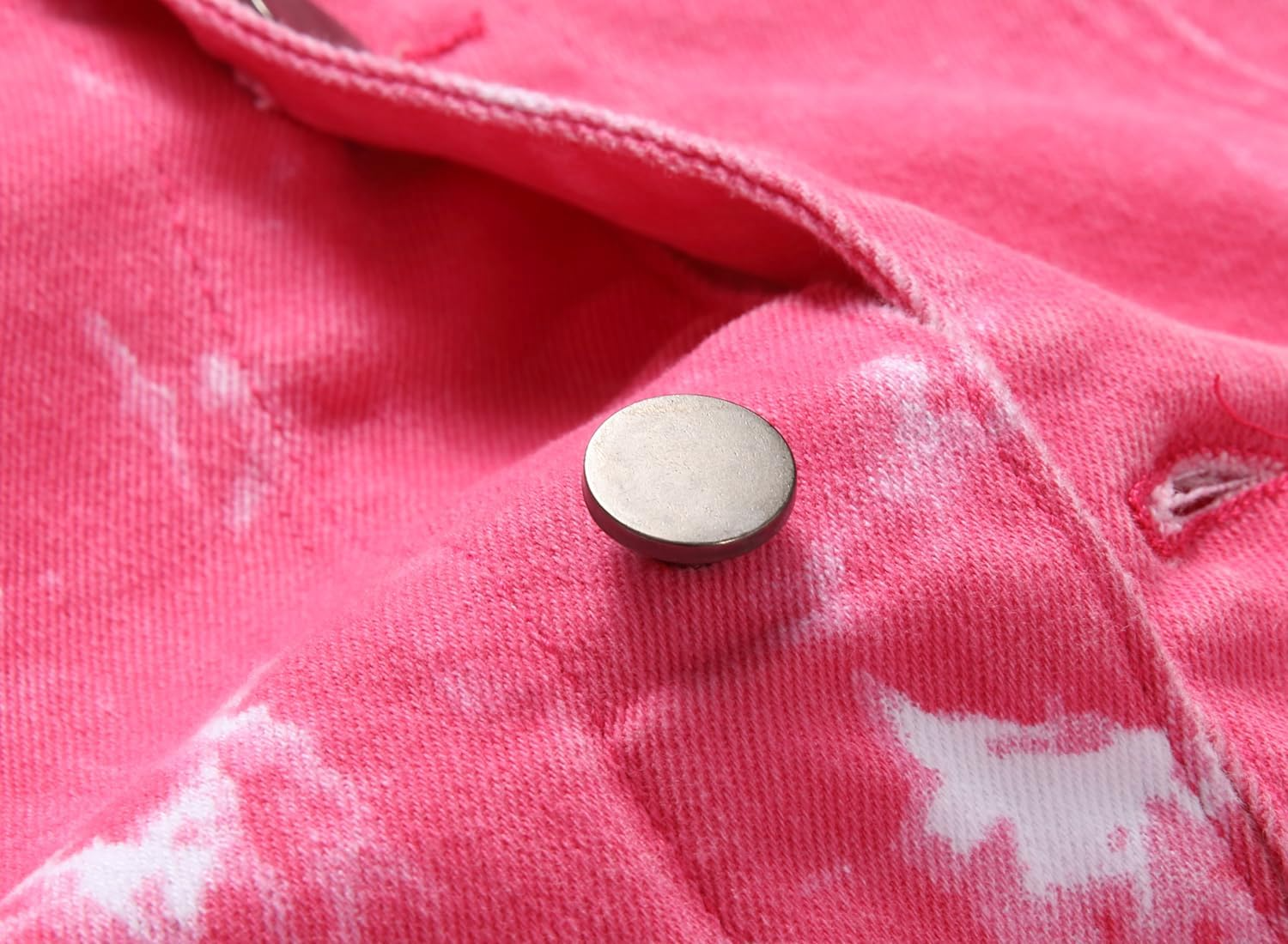 DESIGN FEATURES: Traditional jean jacket styling with button front closure, chest pockets, and adjustable button cuffs