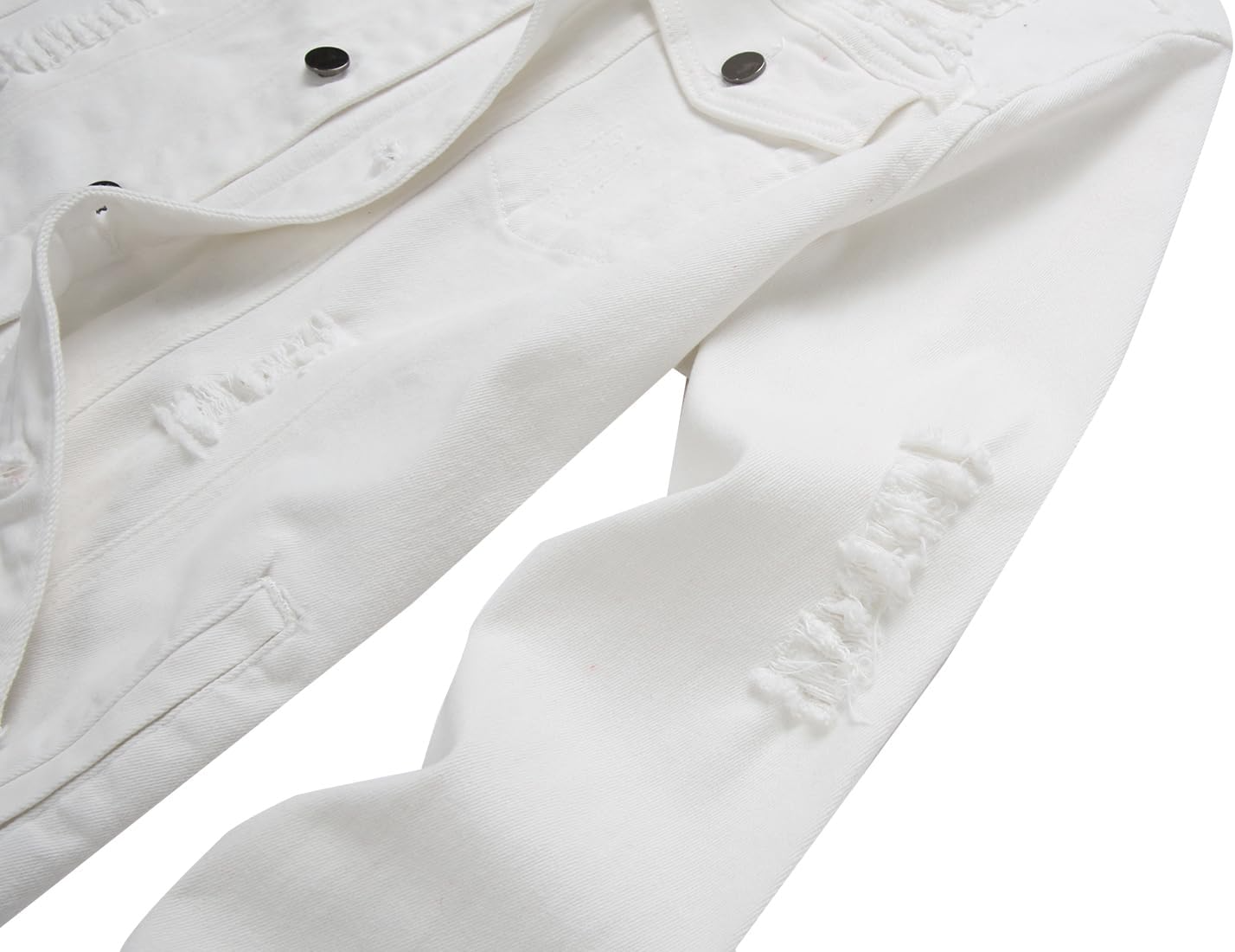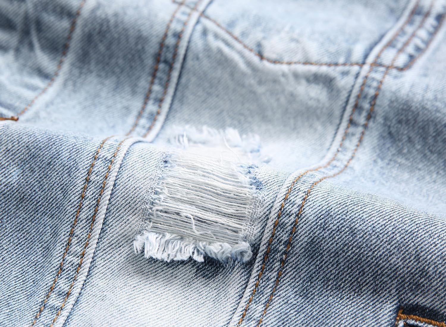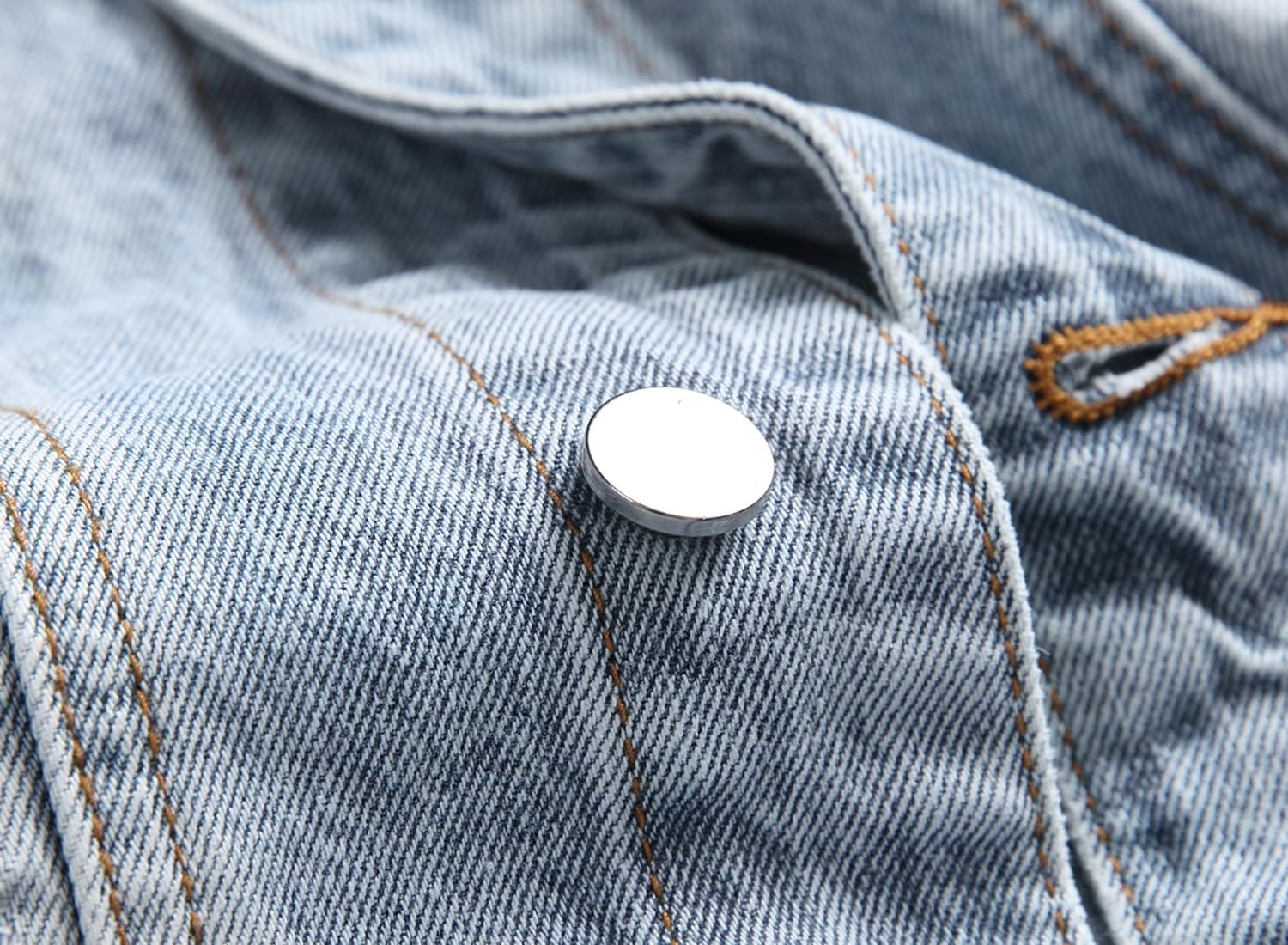 DESIGN FEATURES: Traditional jean jacket styling with button front closure, chest pockets, and adjustable button cuffs