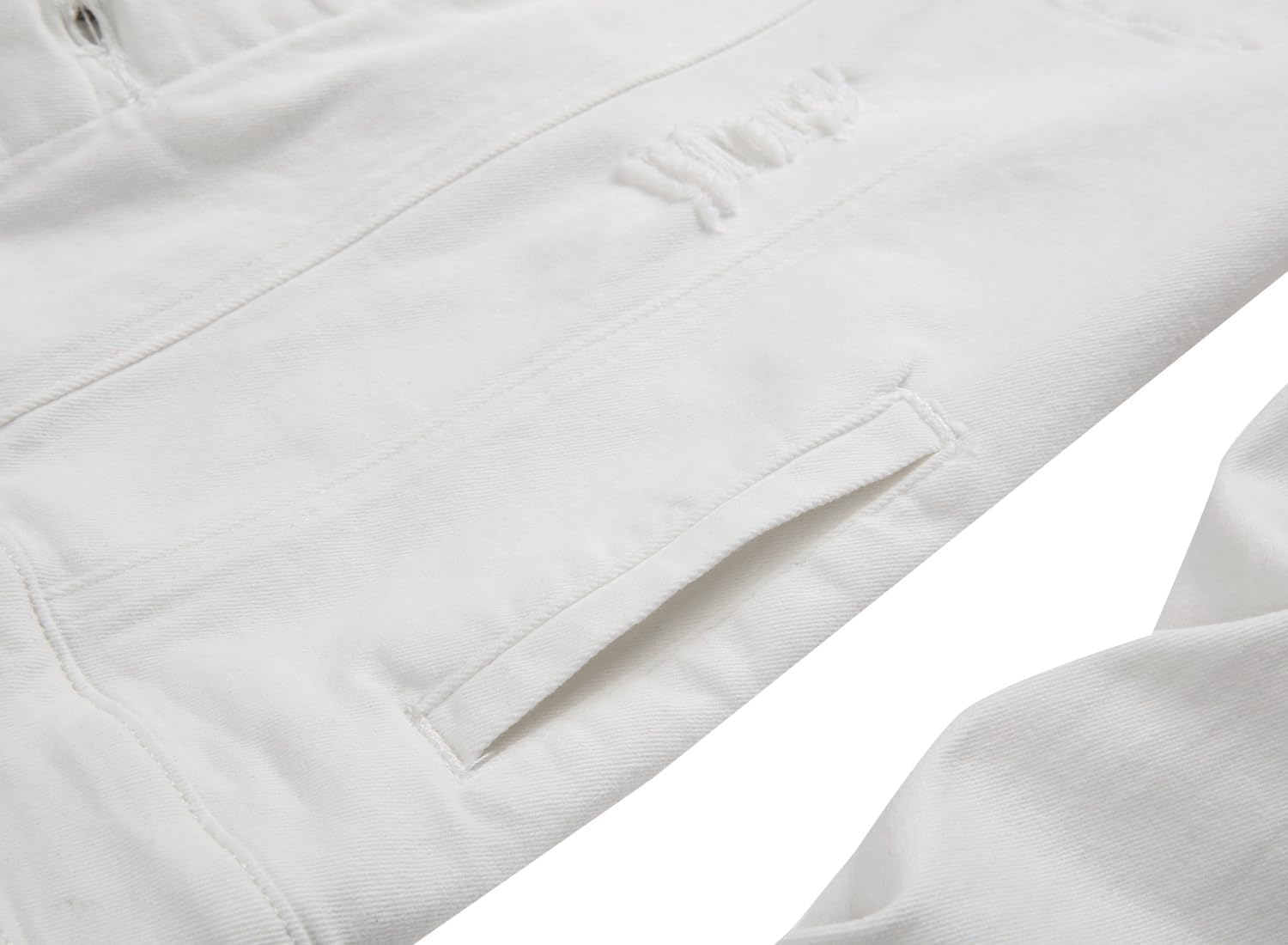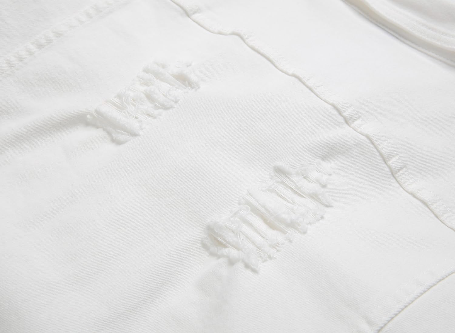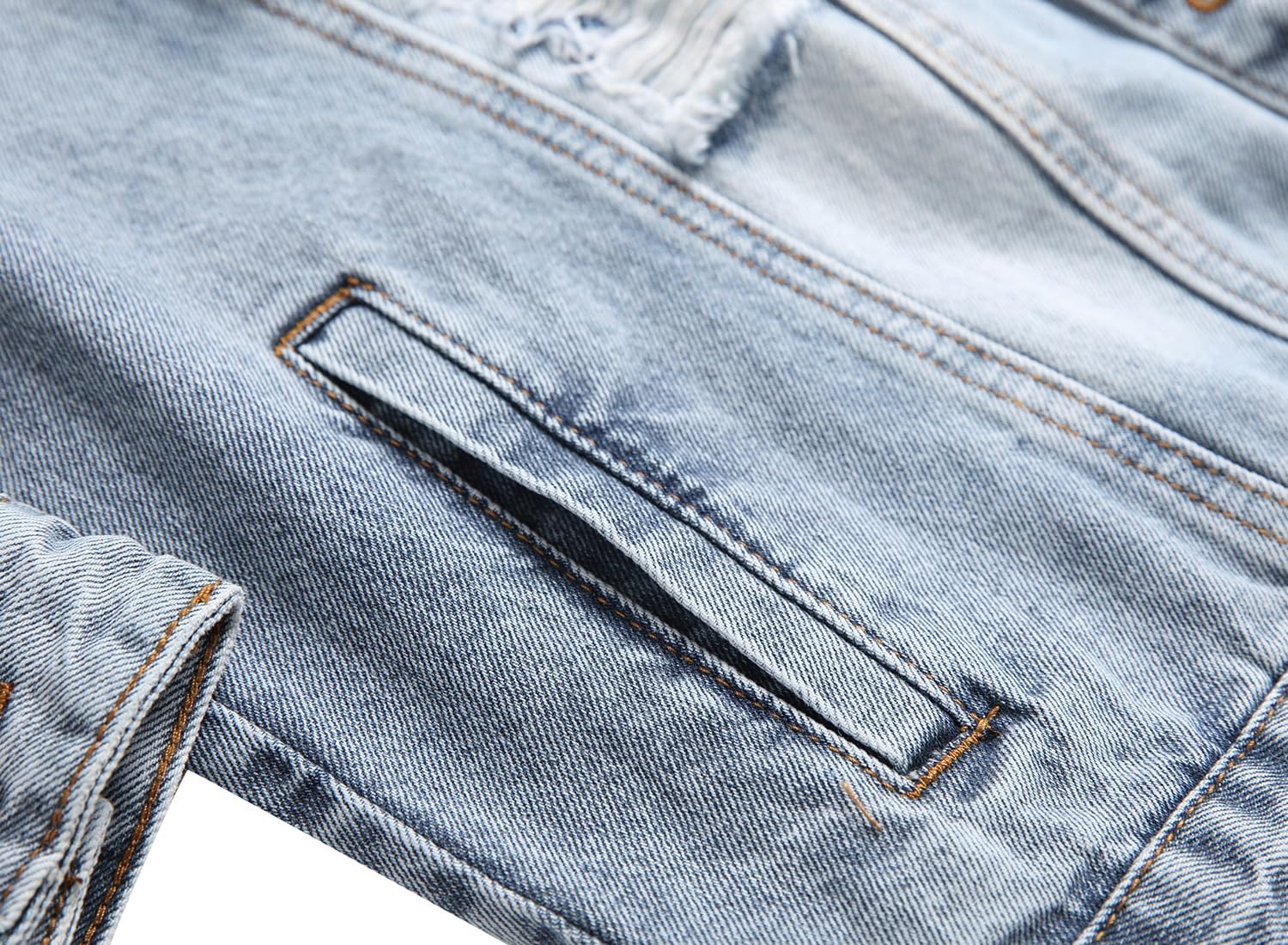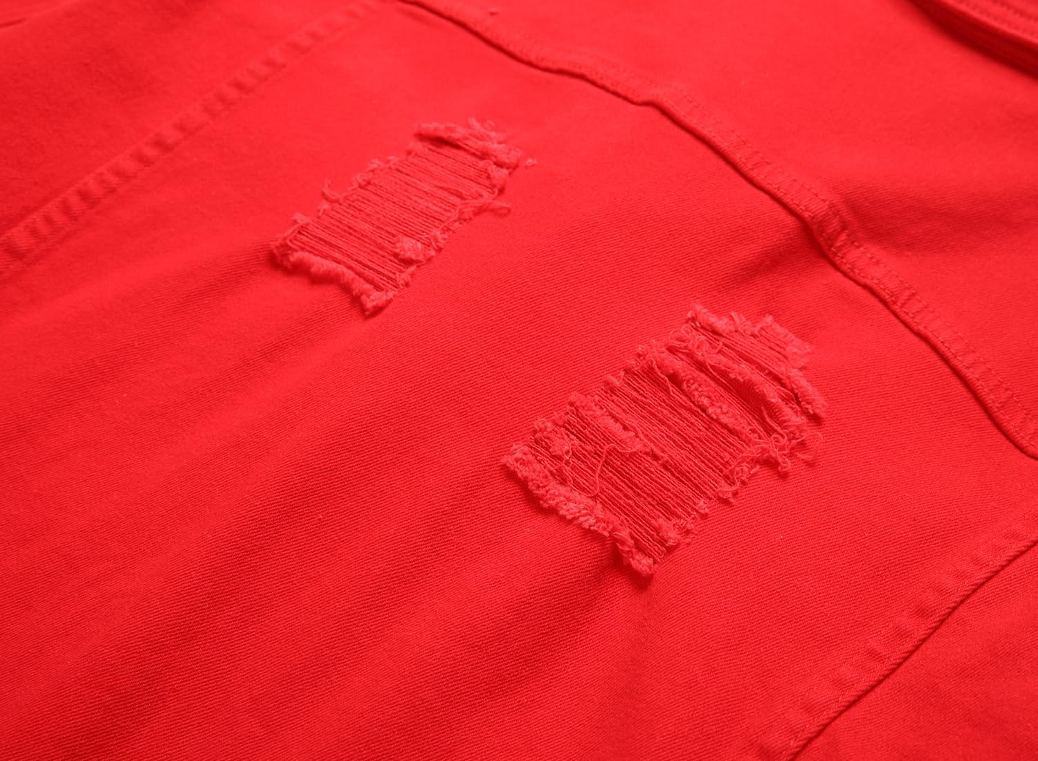 DESIGN FEATURES: Traditional jean jacket styling with button front closure, chest pockets, and adjustable button cuffs