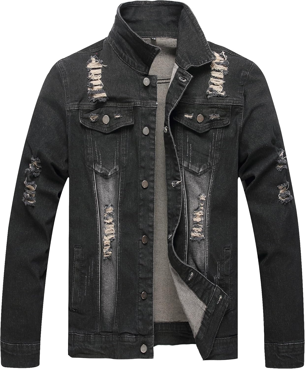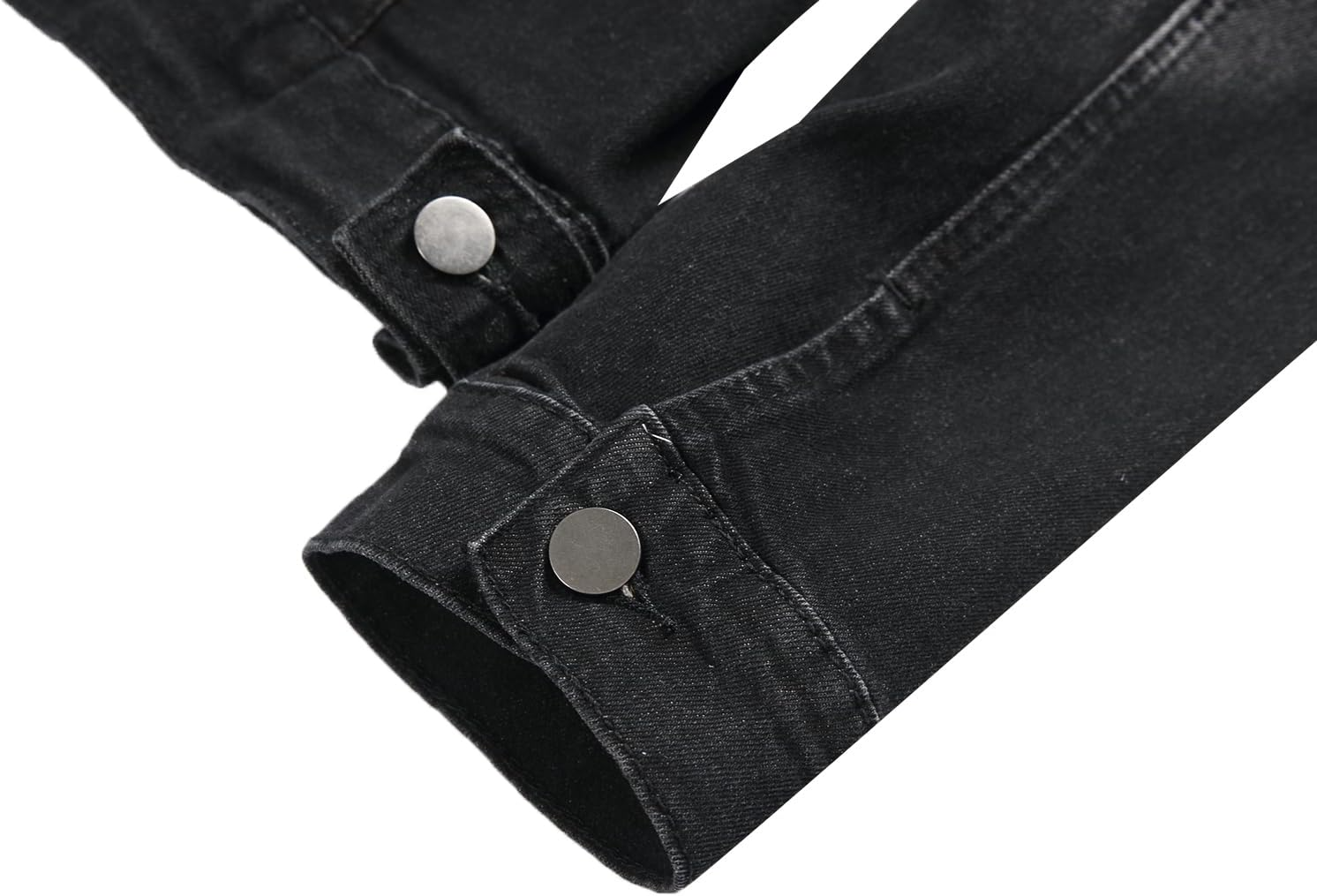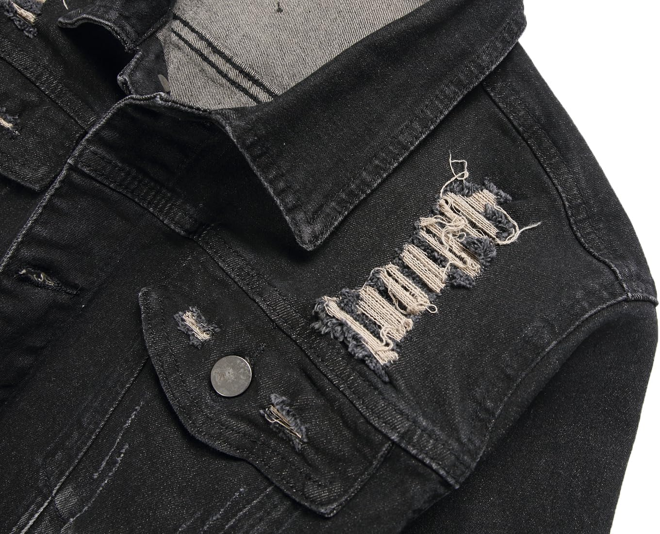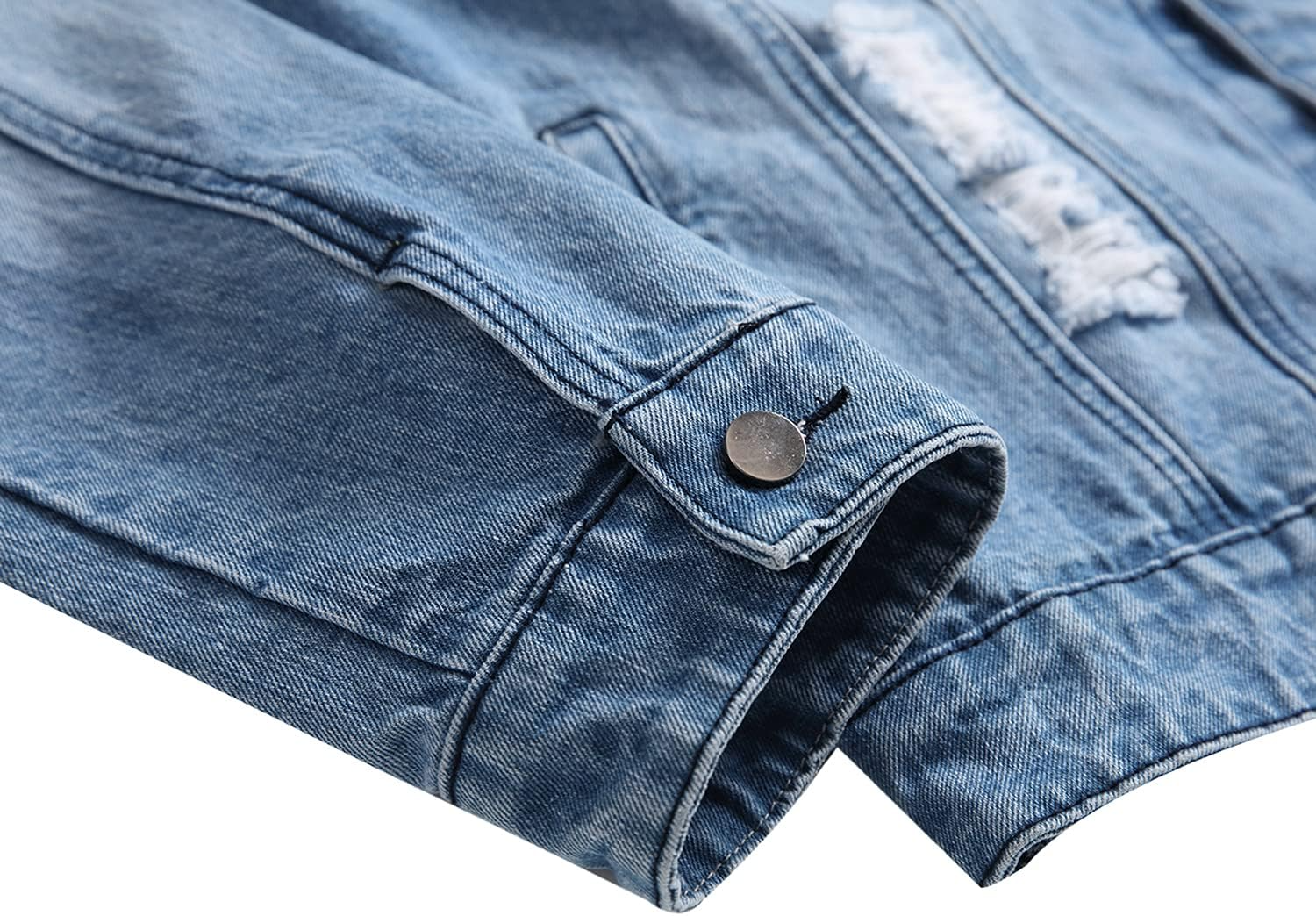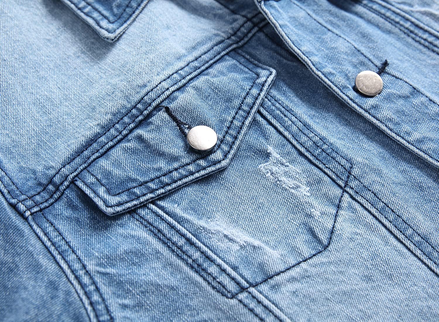 DESIGN FEATURES: Traditional jean jacket styling with button front closure, chest pockets, and adjustable button cuffs