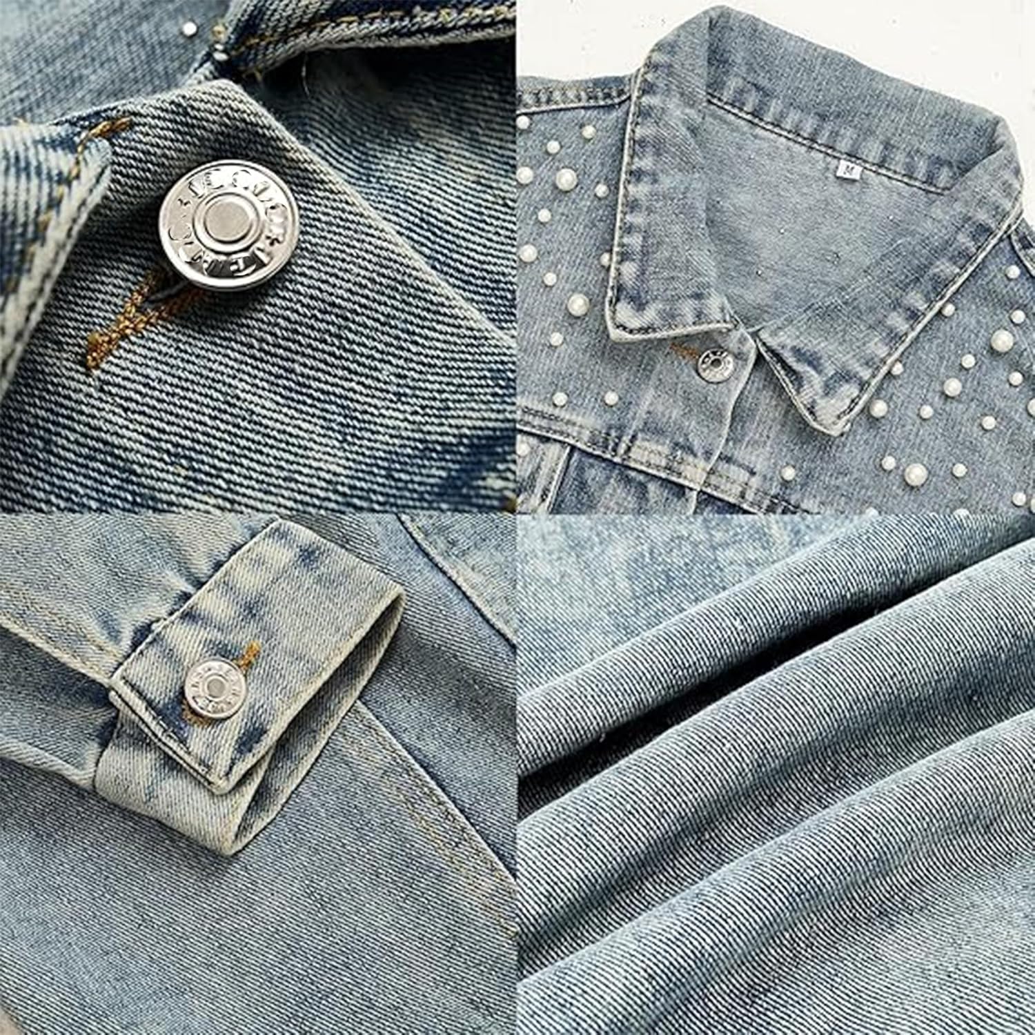 DESIGN FEATURES: Traditional jean jacket styling with button front closure, chest pockets, and adjustable button cuffs